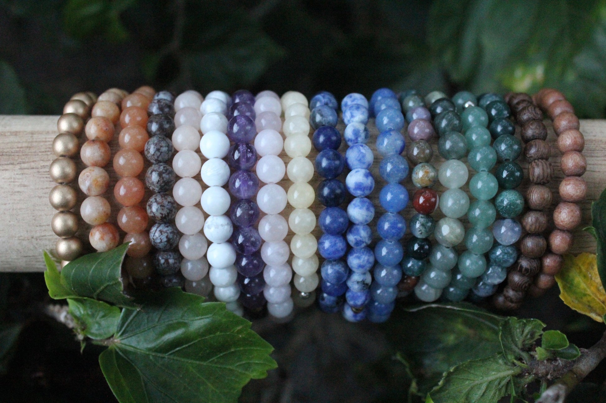 This bracelet may include beads made from the following materials; gemstones, glass, wood, clay, plastic, acrylic, brass. Bead sizes may differ slightly.